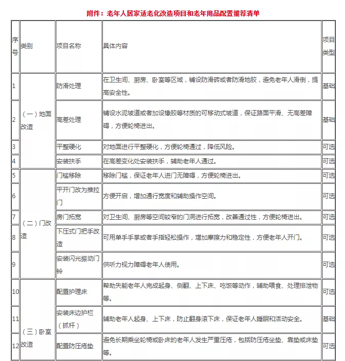 附件:老年人居家适老化改造项目和老年用品配置推荐清单