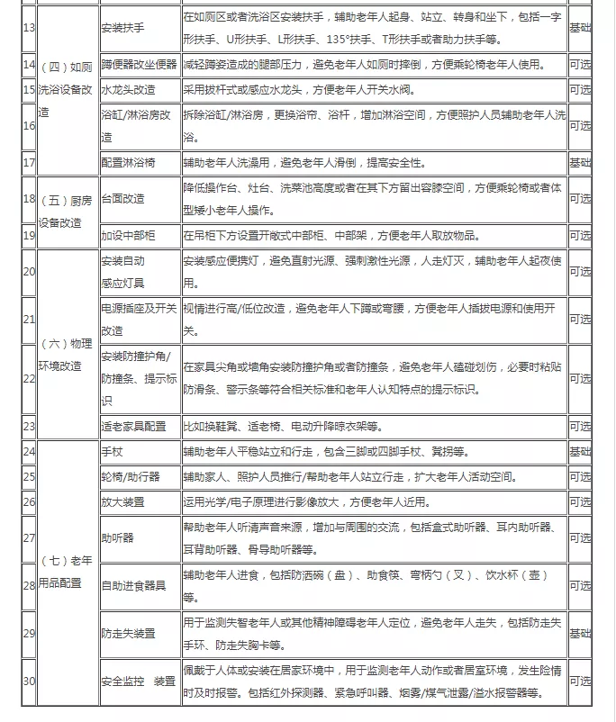 可选类项目是根据老年人家庭意愿,供自主付费购买的适老化改造项目和老年用品。